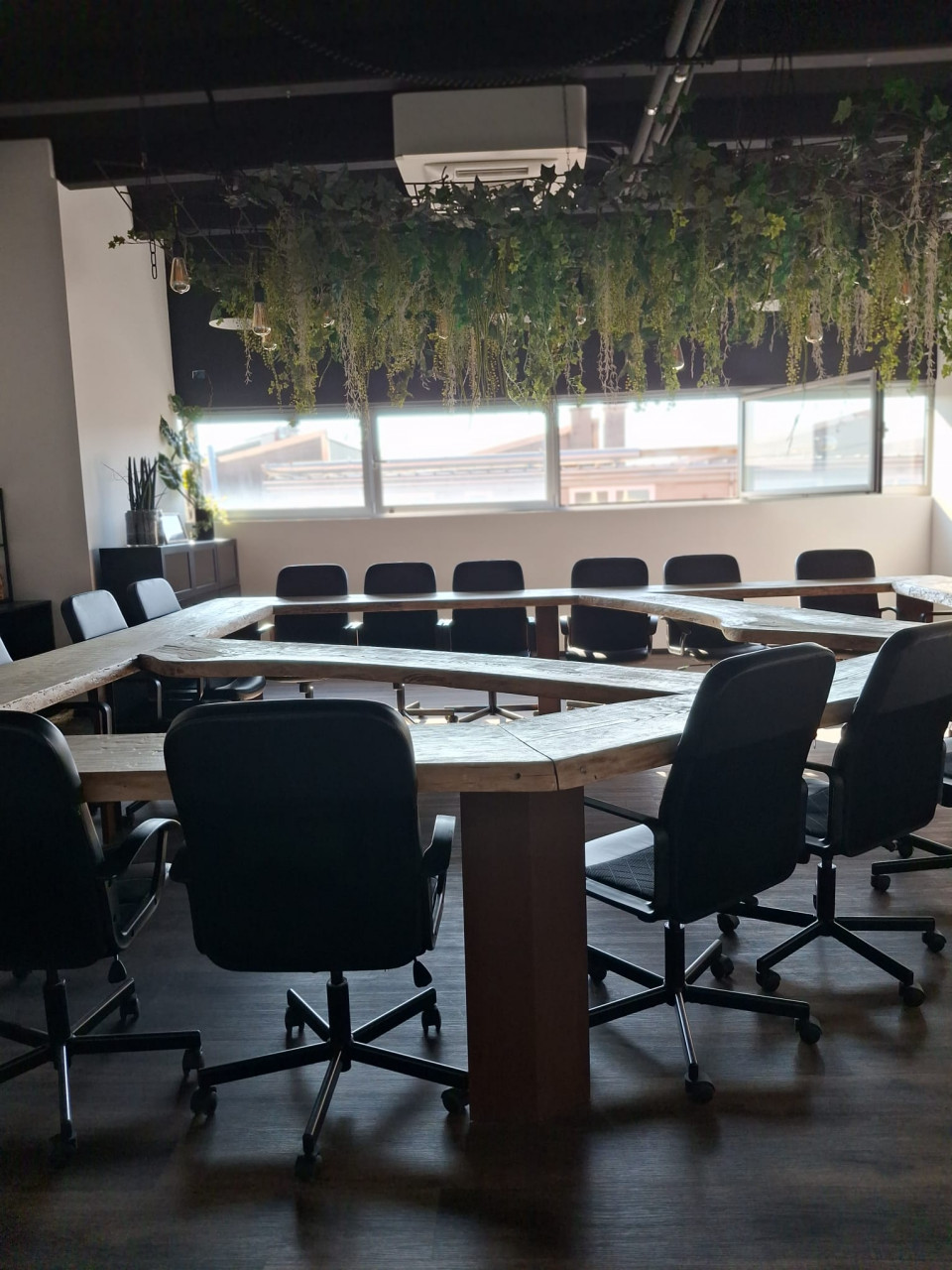 Open space di circa 150 mq con impianto di video-proiezione, perfetto per riunioni aziendali, un ufficio di mq. 18, uno di mq. 22 un'altro di mq. 29, sala riunioni con ampio tavolo lavagna interattiva mq. 55, ufficio di mq. 29, ufficio di mq. 32, ufficio di mq. 85, sala ristoro/mensa completamente allestita con tavoli , sedie e frigorifero. Doppio ingresso, 2 ascensori, aria condizionata e riscaldamento macchina nuova di ultima generazione, fronte tangenziale con possibilità di insegna.
