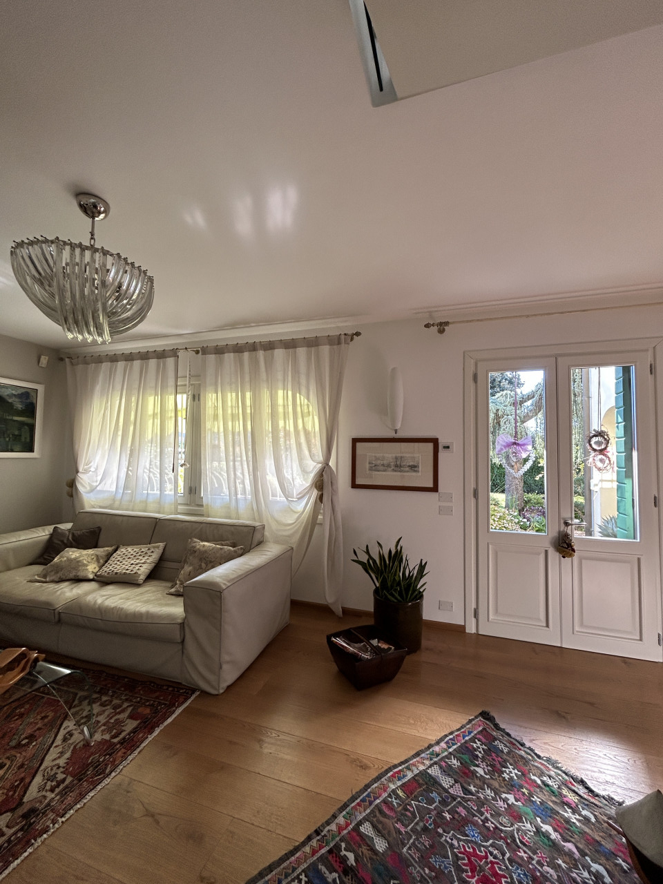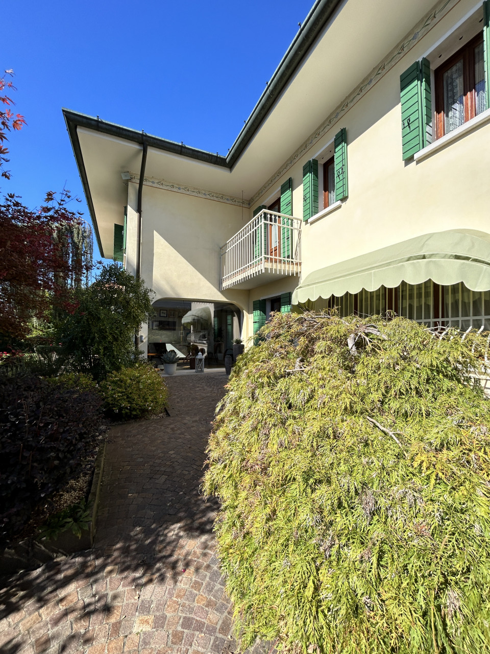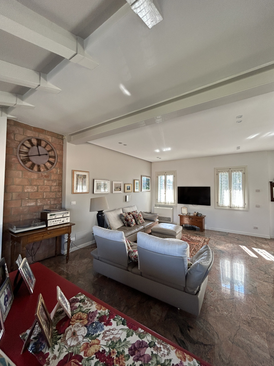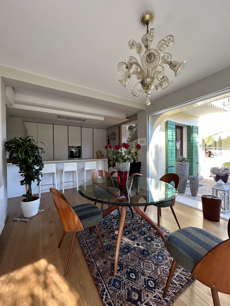 Noale, proponiamo in vendita una raffinata casa singola che si distingue per la luminosissima zona giorno grazie alle grandi vetrate che affacciano sul curato giardino privato.
