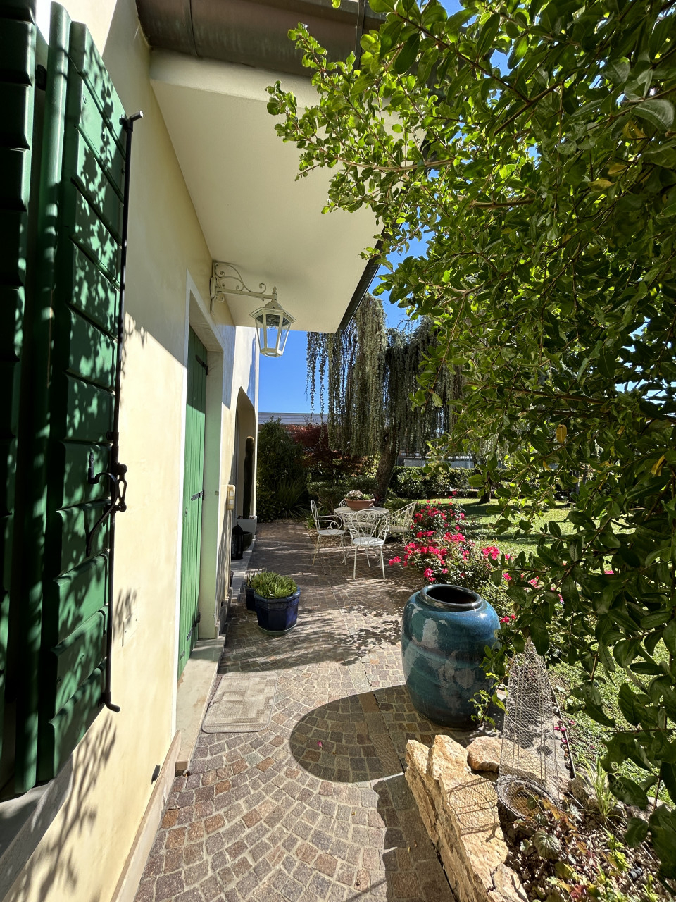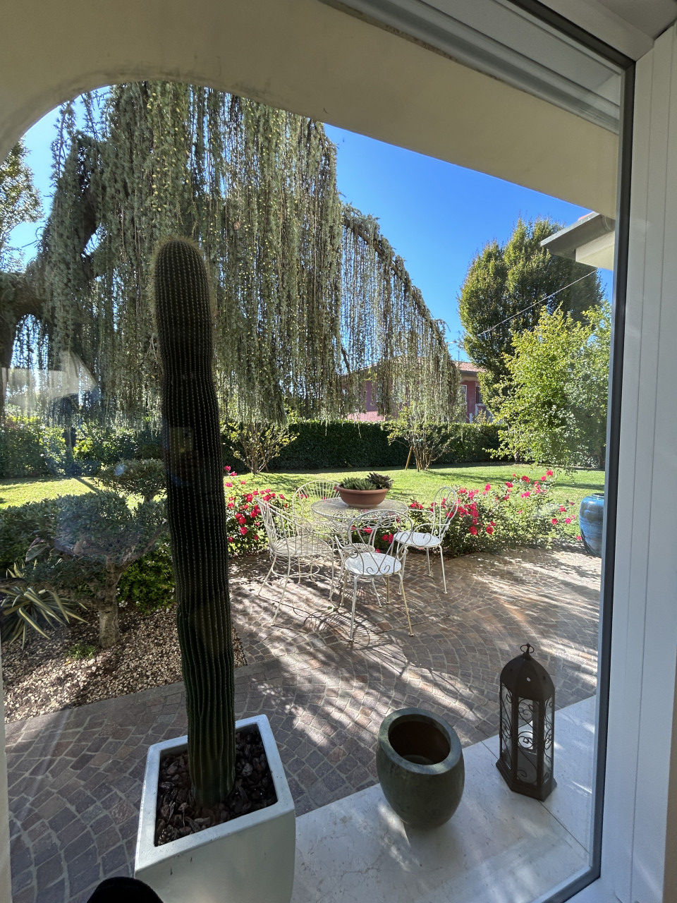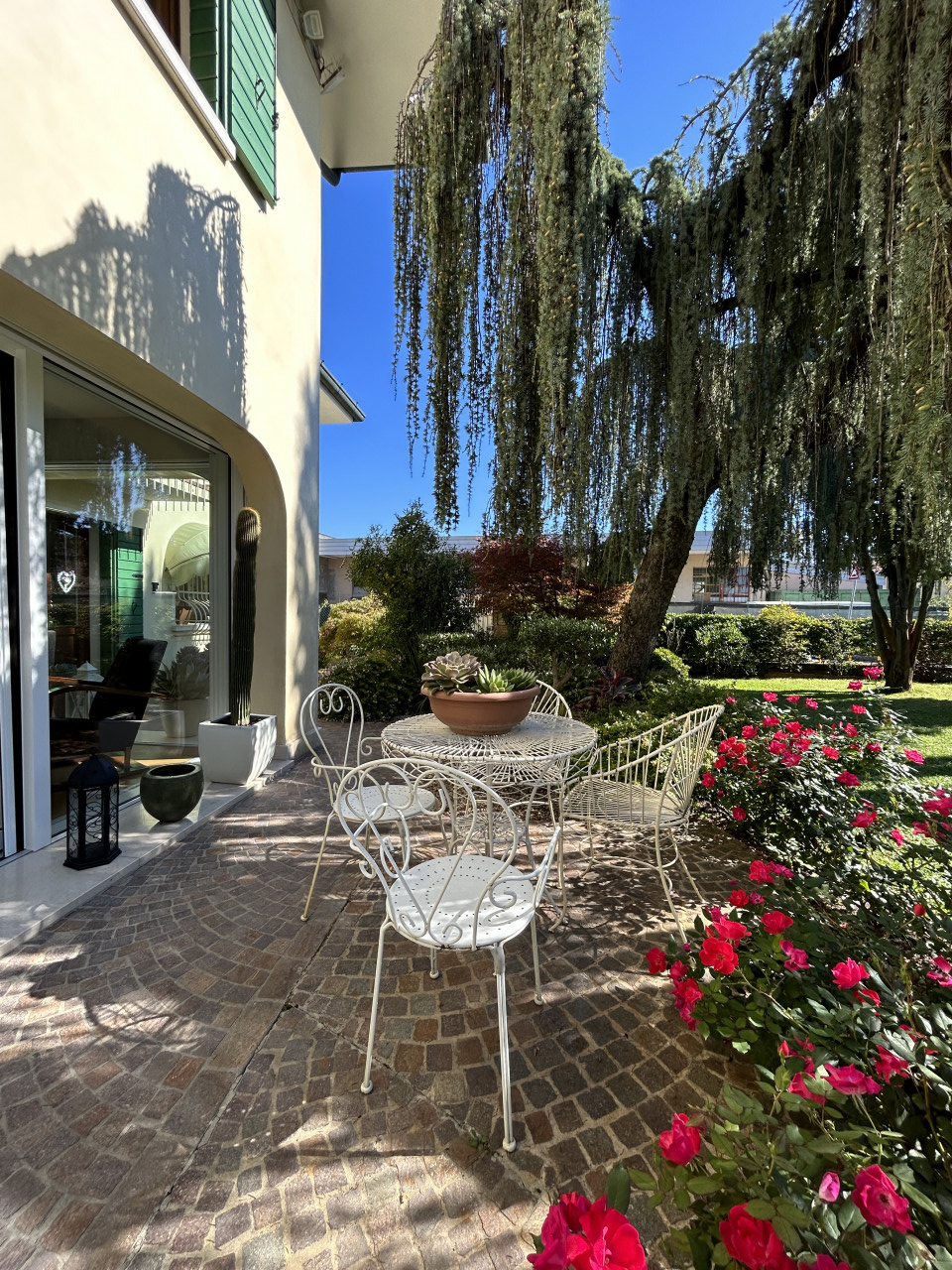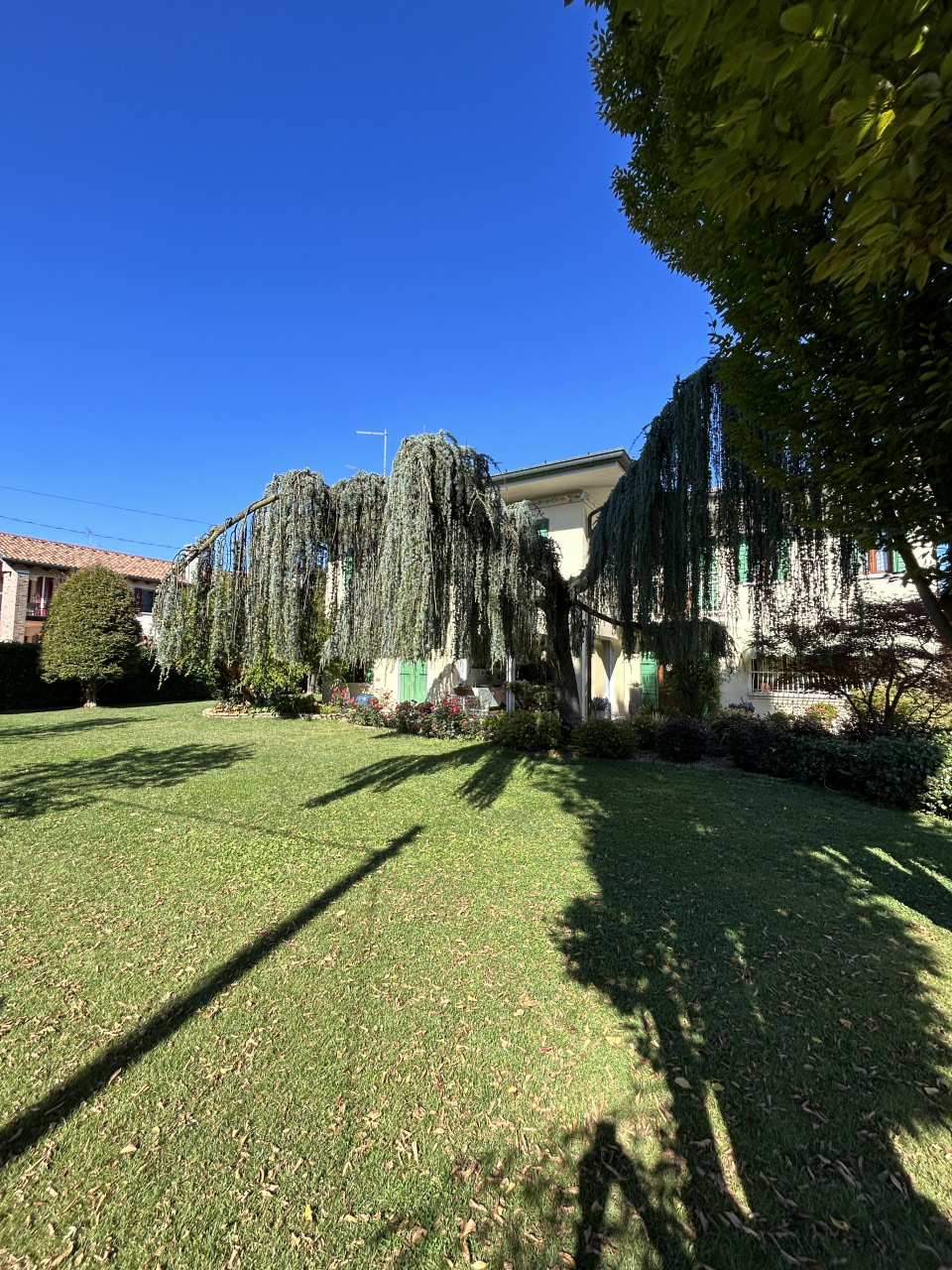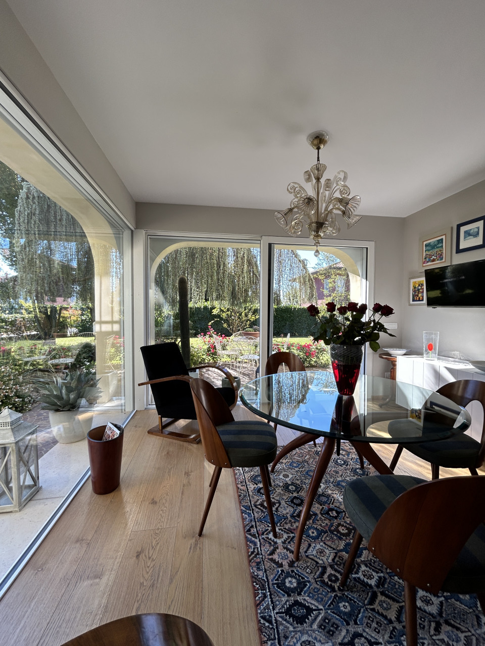 Noale, proponiamo in vendita una raffinata casa singola che si distingue per la luminosissima zona giorno grazie alle grandi vetrate che affacciano sul curato giardino privato.