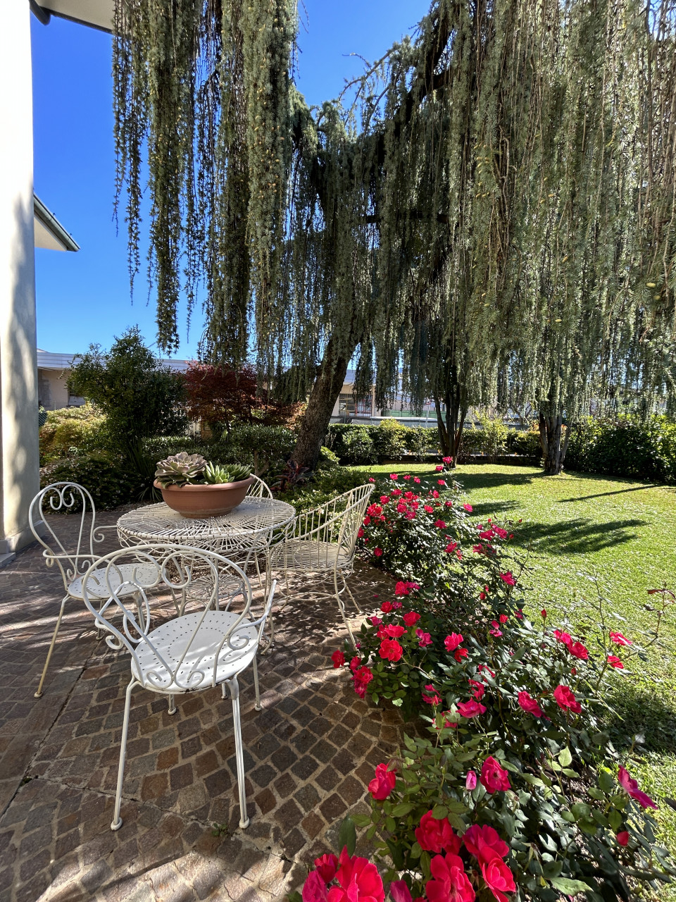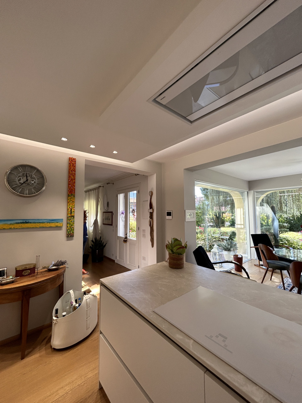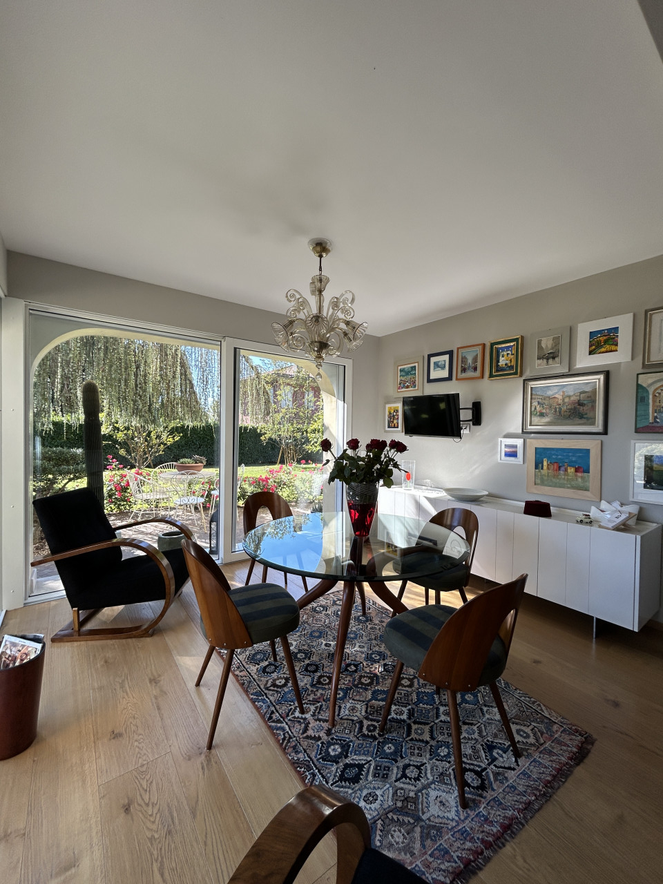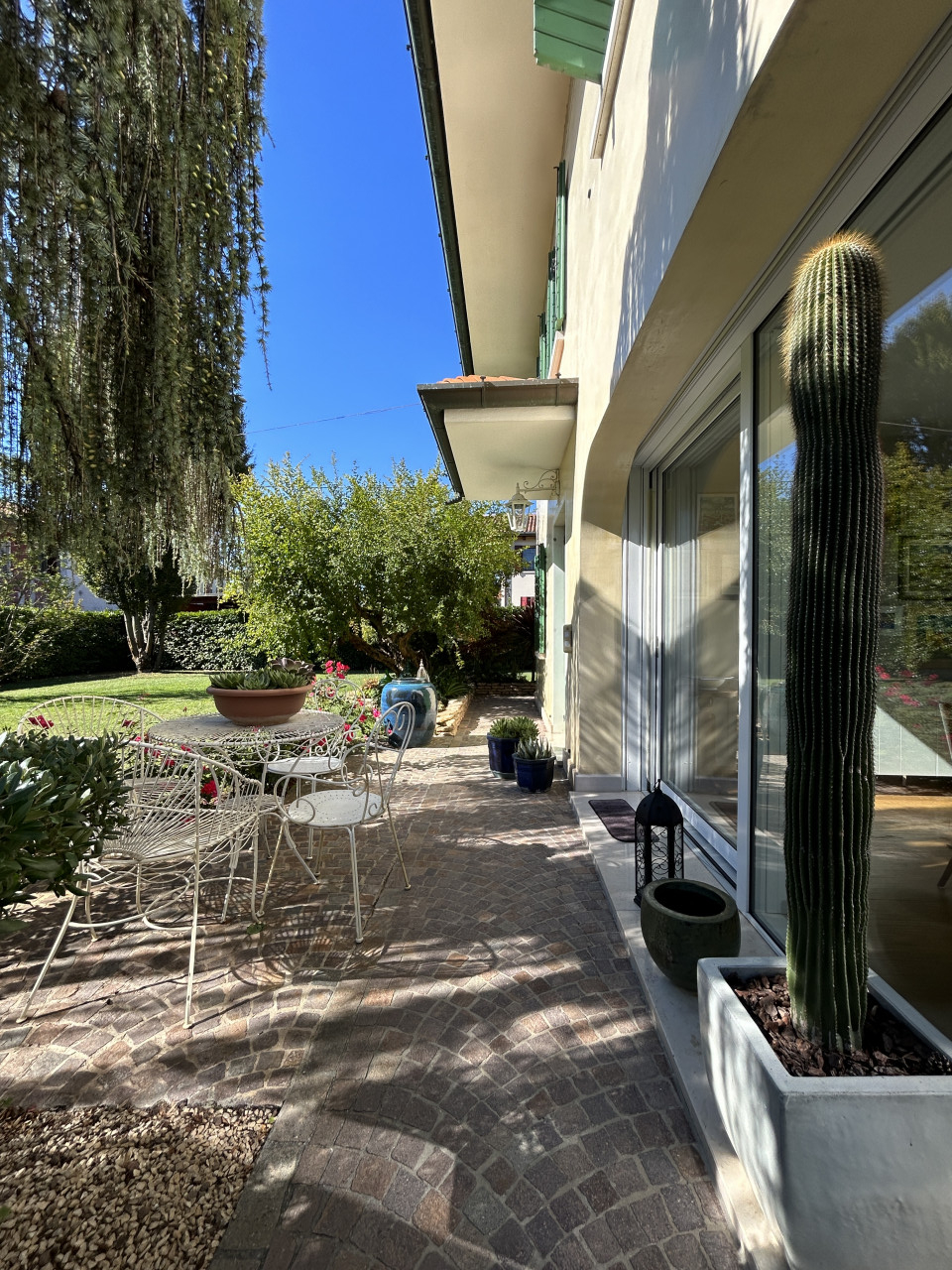 Noale, proponiamo in vendita una raffinata casa singola che si distingue per la luminosissima zona giorno grazie alle grandi vetrate che affacciano sul curato giardino privato.