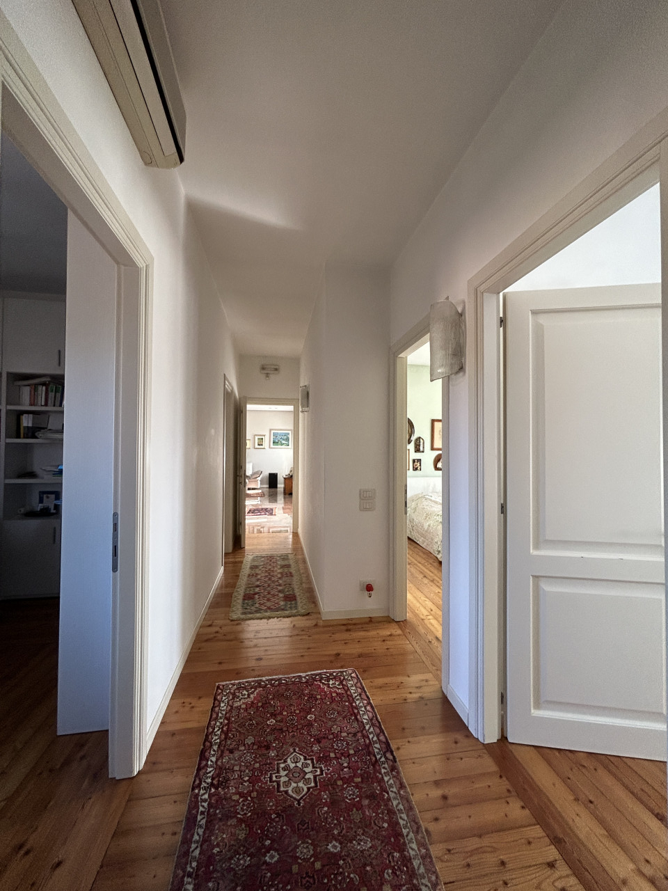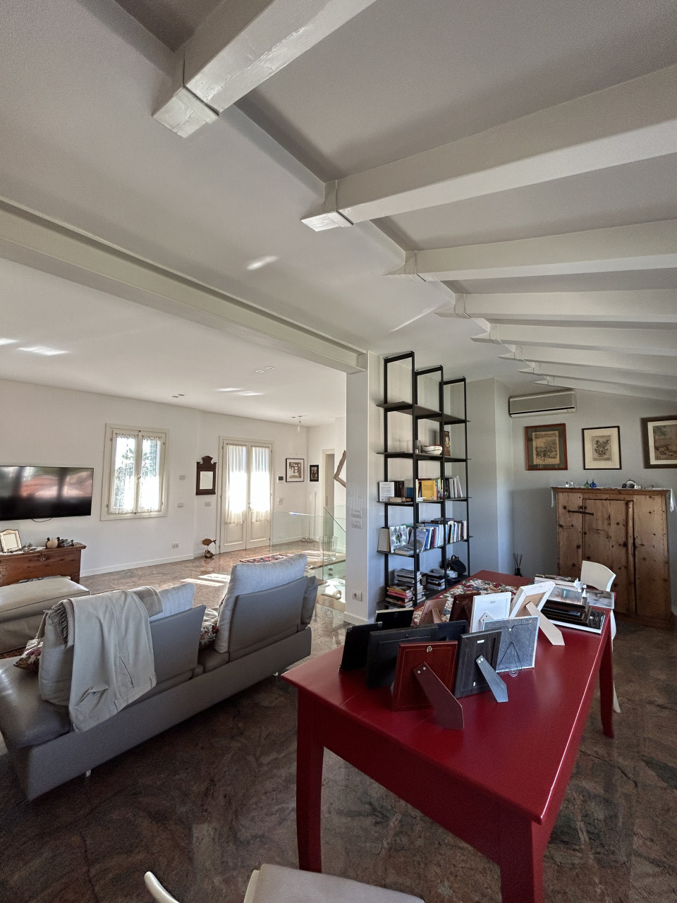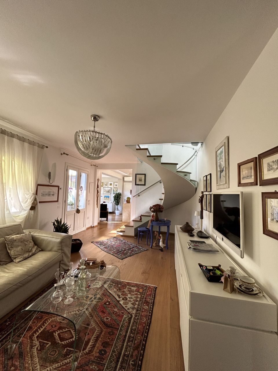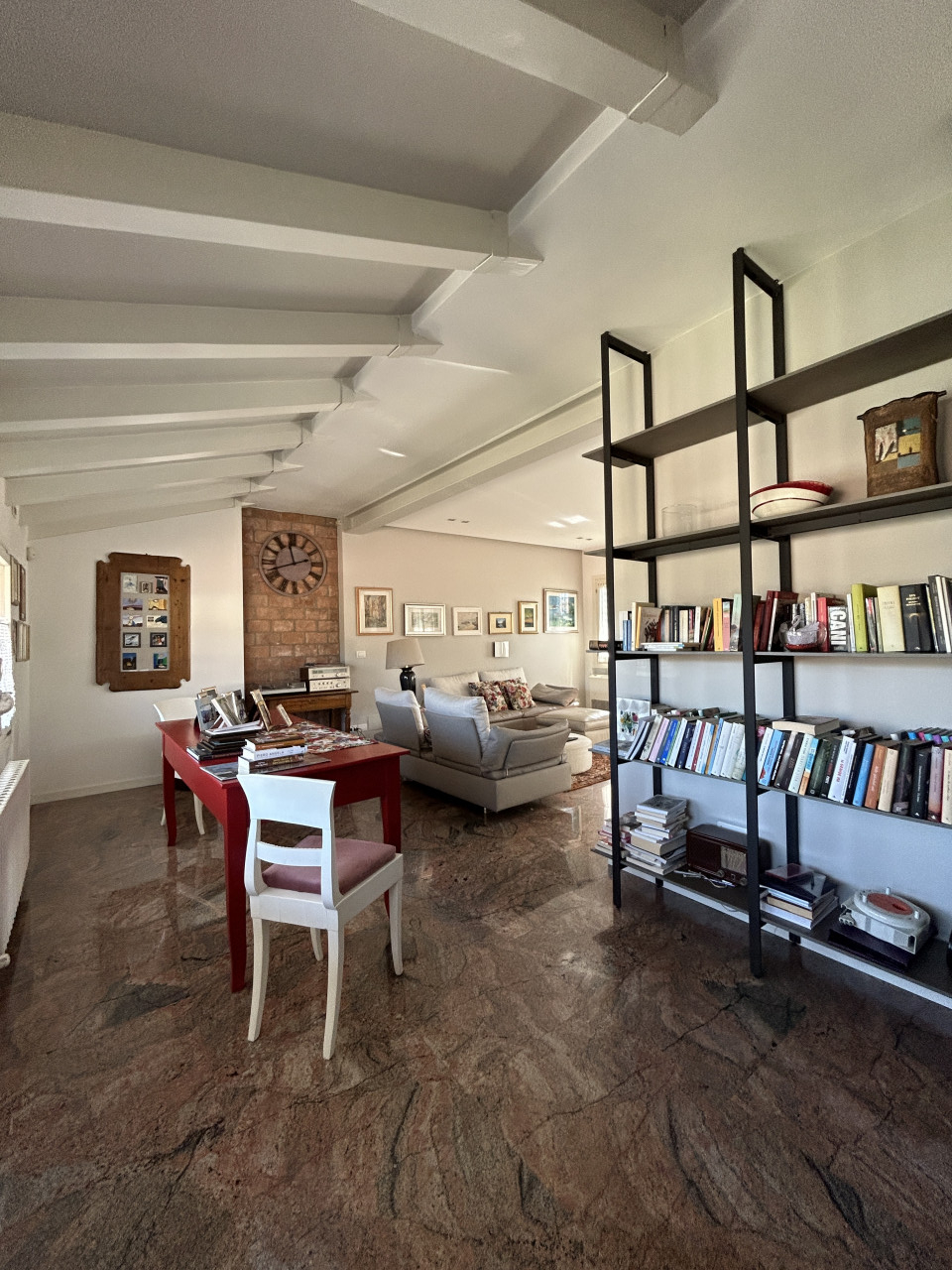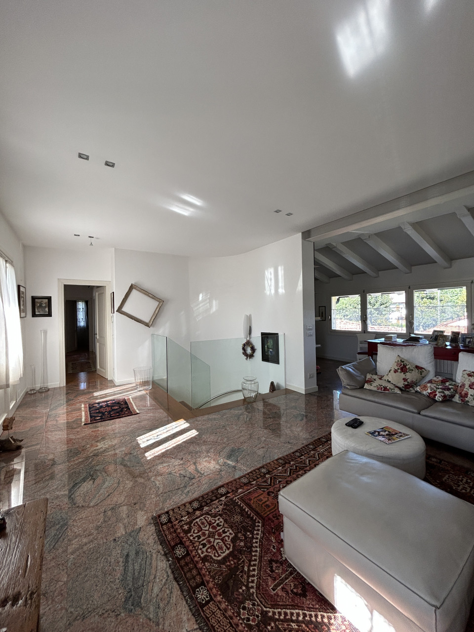 Al piano primo un altro soggiorno molto luminoso, un bagno, due camere matrimoniali, uno studio e una stanza cabina-armadio.