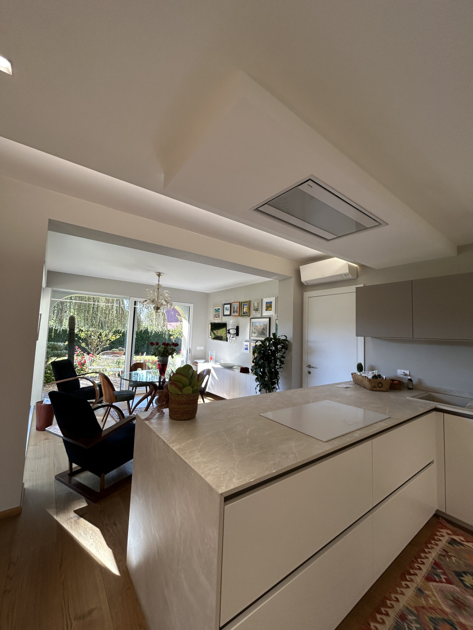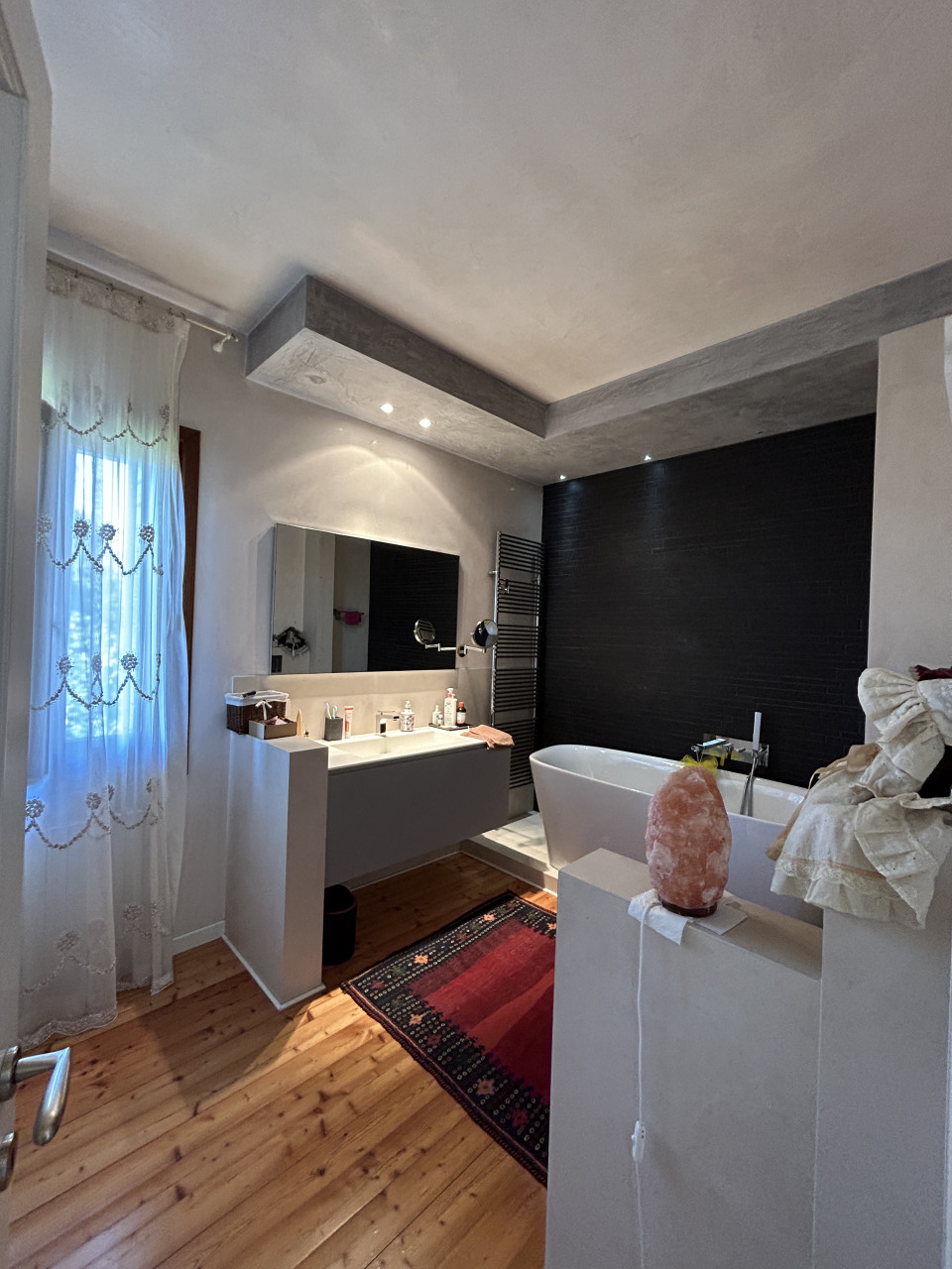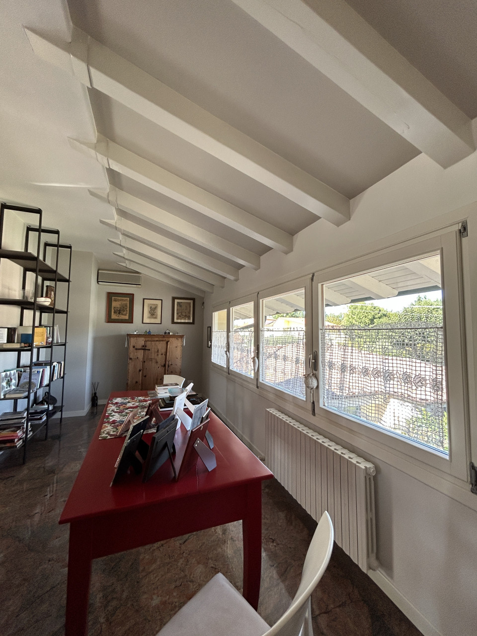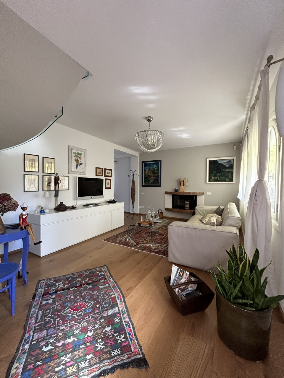 Al piano primo un altro soggiorno molto luminoso, un bagno, due camere matrimoniali, uno studio e una stanza cabina-armadio.