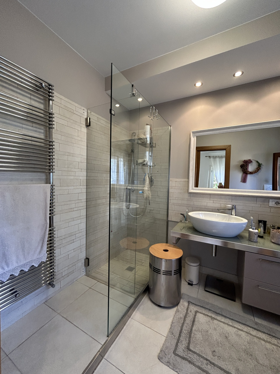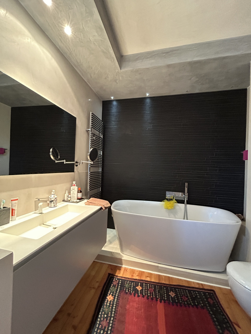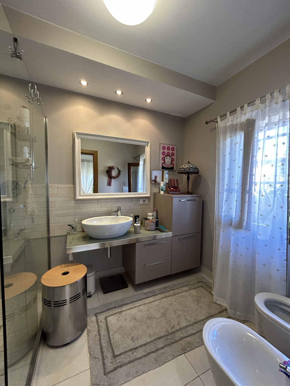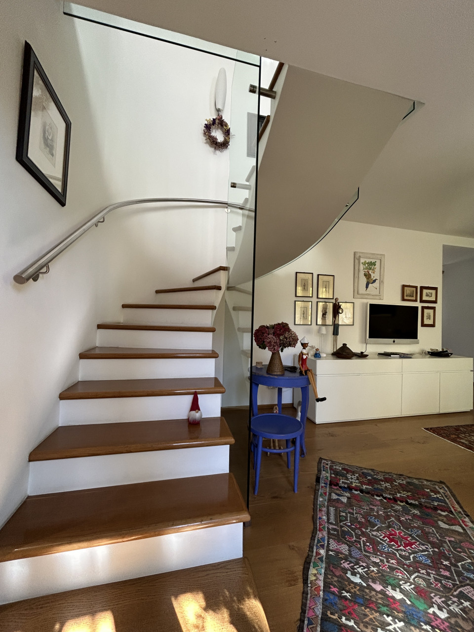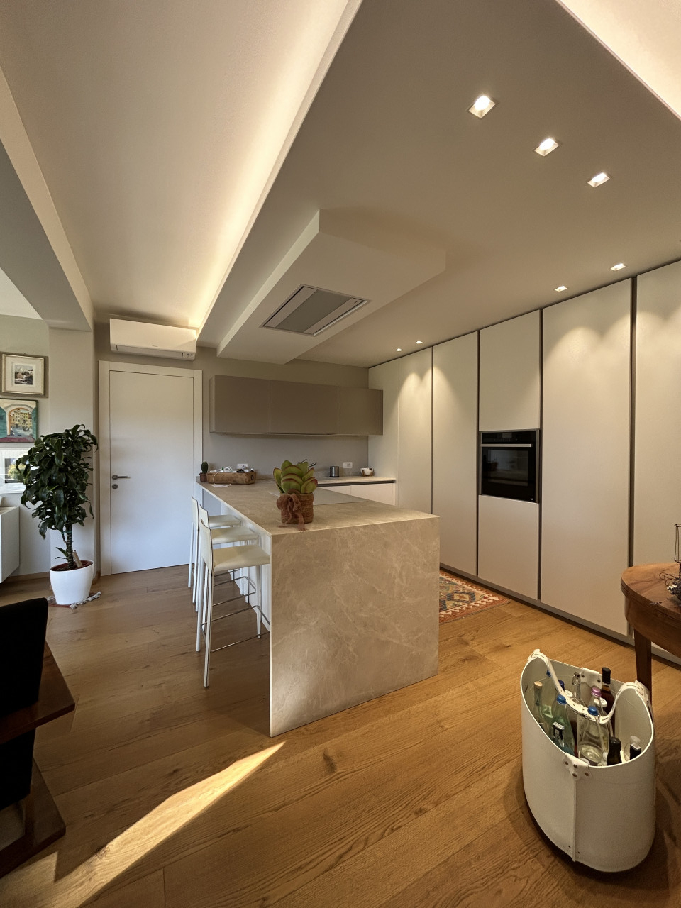 Al piano primo un altro soggiorno molto luminoso, un bagno, due camere matrimoniali, uno studio e una stanza cabina-armadio.